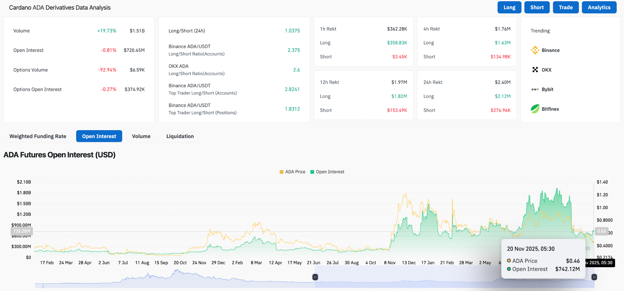 Analyse des dérivés de l’ADA (source : Coinglass)