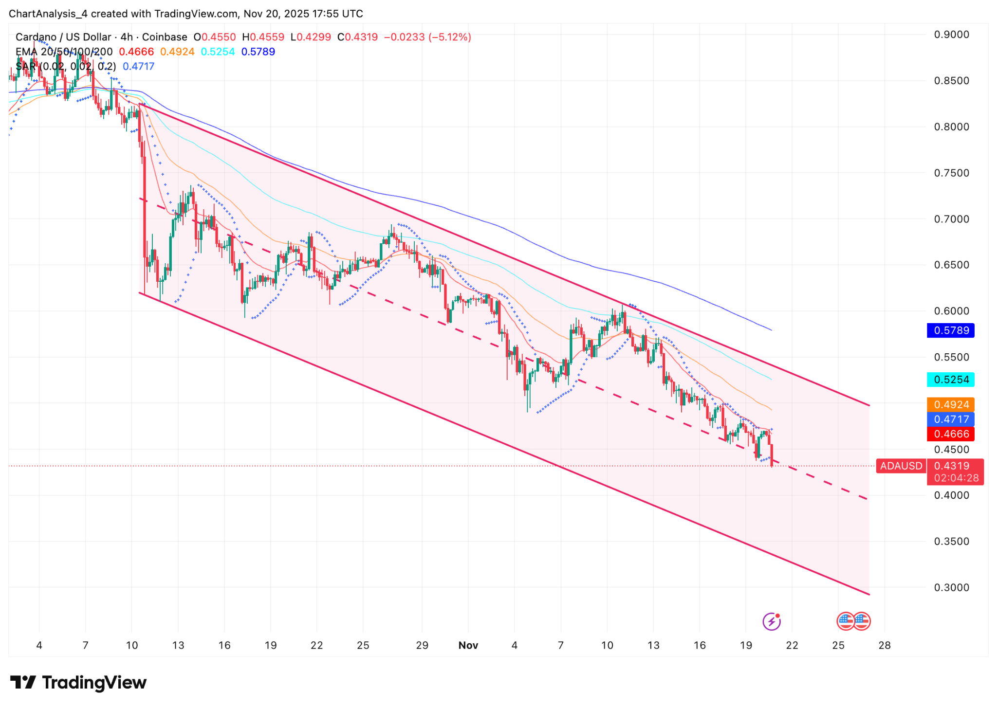 Analyse des prix de Cardano sur 4 heures (source : TradingView)