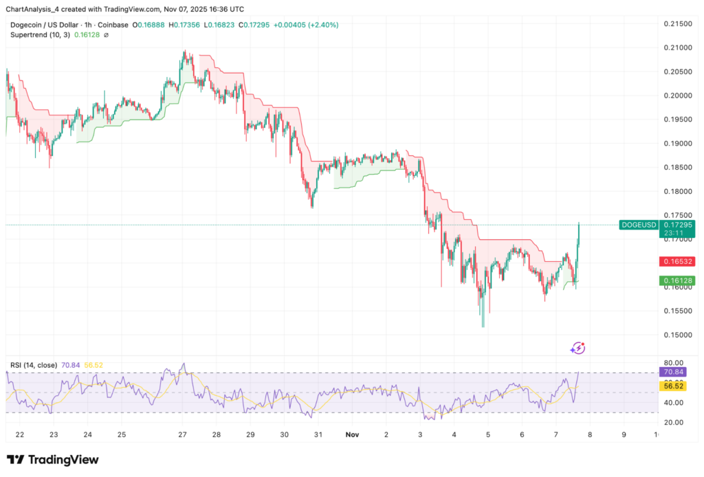 L’indicateur Supertrend est devenu haussier, tandis que le RSI a grimpé dans la zone de surachat près de 70, montrant une force renouvelée.