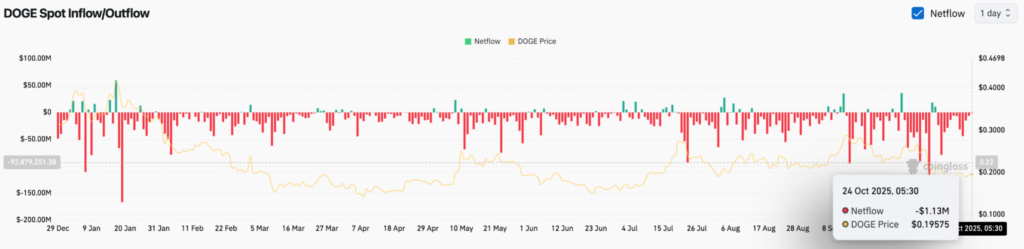 Selon les données de Coinglass, le Dogecoin a enregistré 1,13 million de dollars de sorties nettes le 24 octobre.