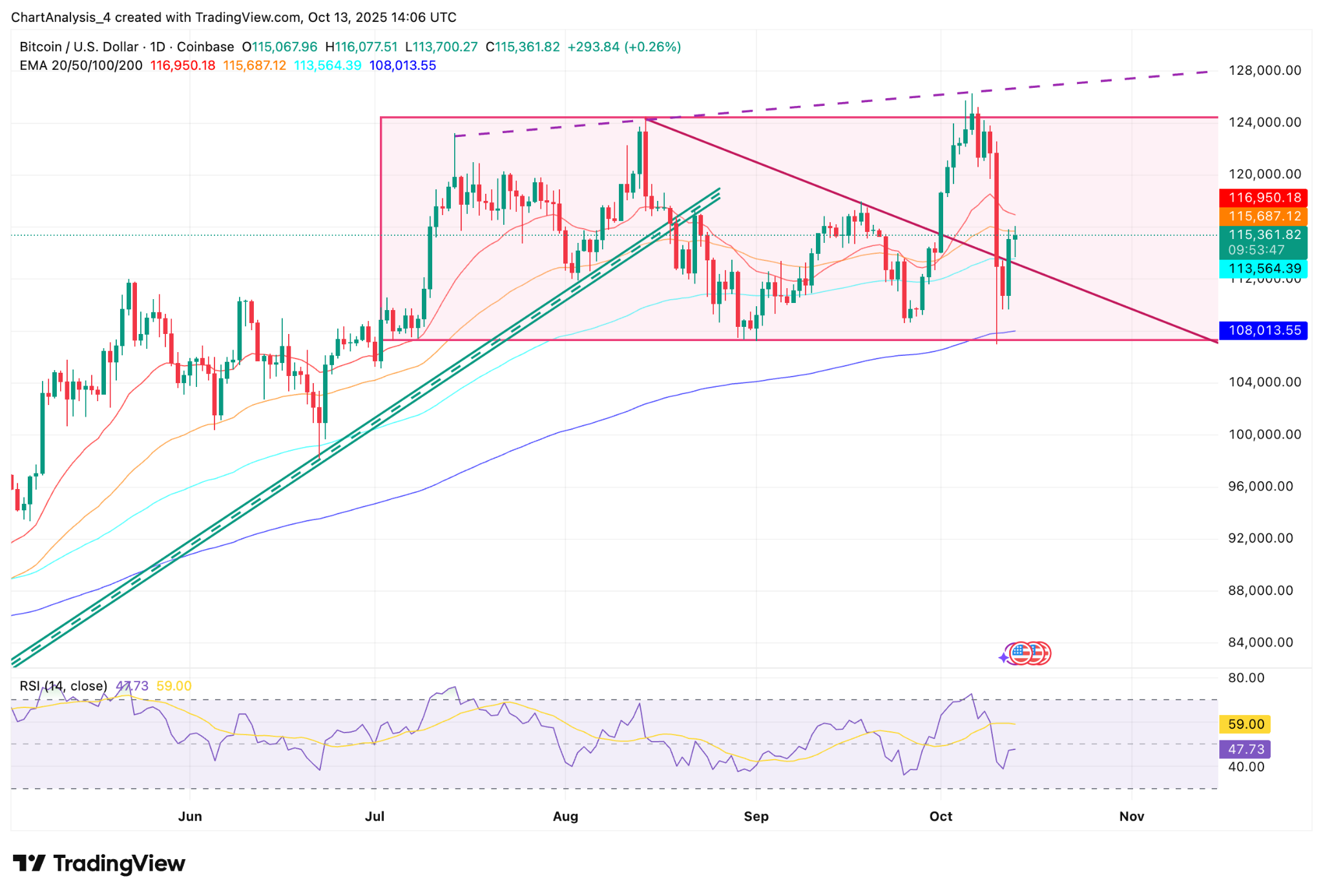 Le prix du Bitcoin se maintient à 115 000 dollars mais vise un breakout à 124 000 dollars