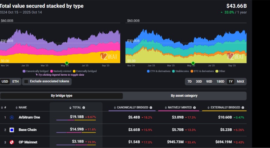 Après l’introduction des ETF, le réseau principal d’Ethereum ne peut plus gérer la charge seul. Selon le tableau de bord de la valeur totale sécurisée (TVS) de L2BEAT, les réseaux Layer-2 sont devenus la principale couche de règlement pour les activités à volume élevé d’Ethereum. Au dernier pointage, la valeur totale sécurisée (TVS) à travers les L2 se chiffre à plusieurs dizaines de milliards, avec Arbitrum (19,1 milliards de dollars), Base (14,5 milliards de dollars) et Optimism (3,1 milliards de dollars) en tête de l’écosystème, Arbitrum détenant la plus grande part de la valeur sécurisée L2. Les mises à niveau du protocole telles que EIP-4844 (dans le cadre de la mise à niveau Dencun) ont réduit de manière significative les coûts des données d’appel rollup et abaissé les frais de transaction pour les rollups.
