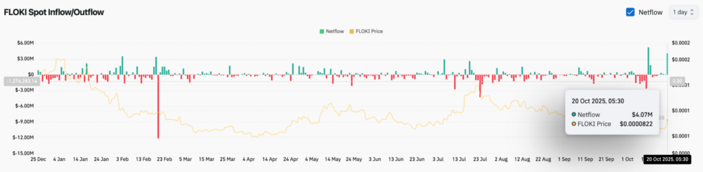 Le soi-disant “effet Musk” est revenu sur le marché des cryptomonnaies alors que Floki a enregistré 4,07 millions de dollars d’entrées nettes le 20 octobre, ce qui constitue son total journalier le plus élevé de ce mois, selon Coinglass.