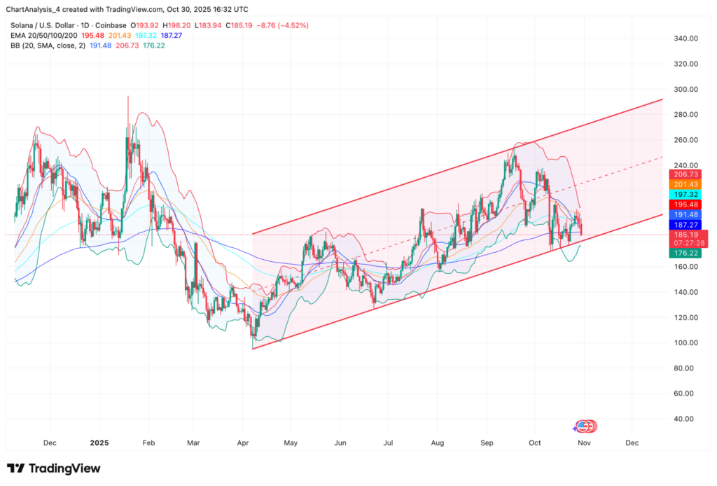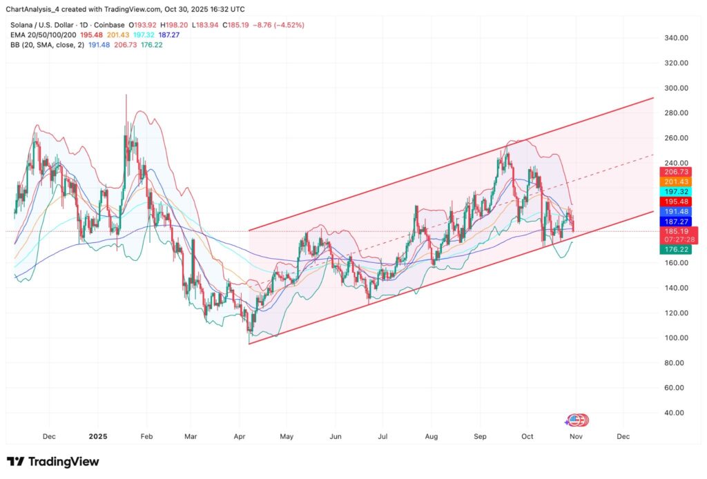 Malgré cette baisse, les données techniques indiquent que le cours du SOL tient fermement dans son canal ascendant, qui guide les mouvements de prix depuis avril.