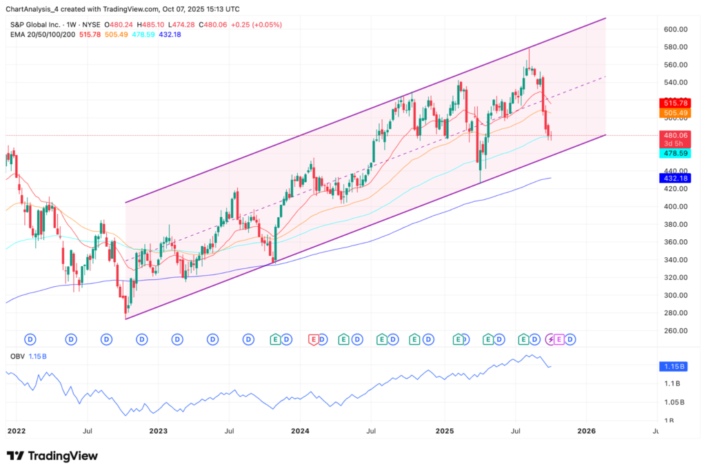 Graphique hebdomadaire de SPGI (Source : TradingView)