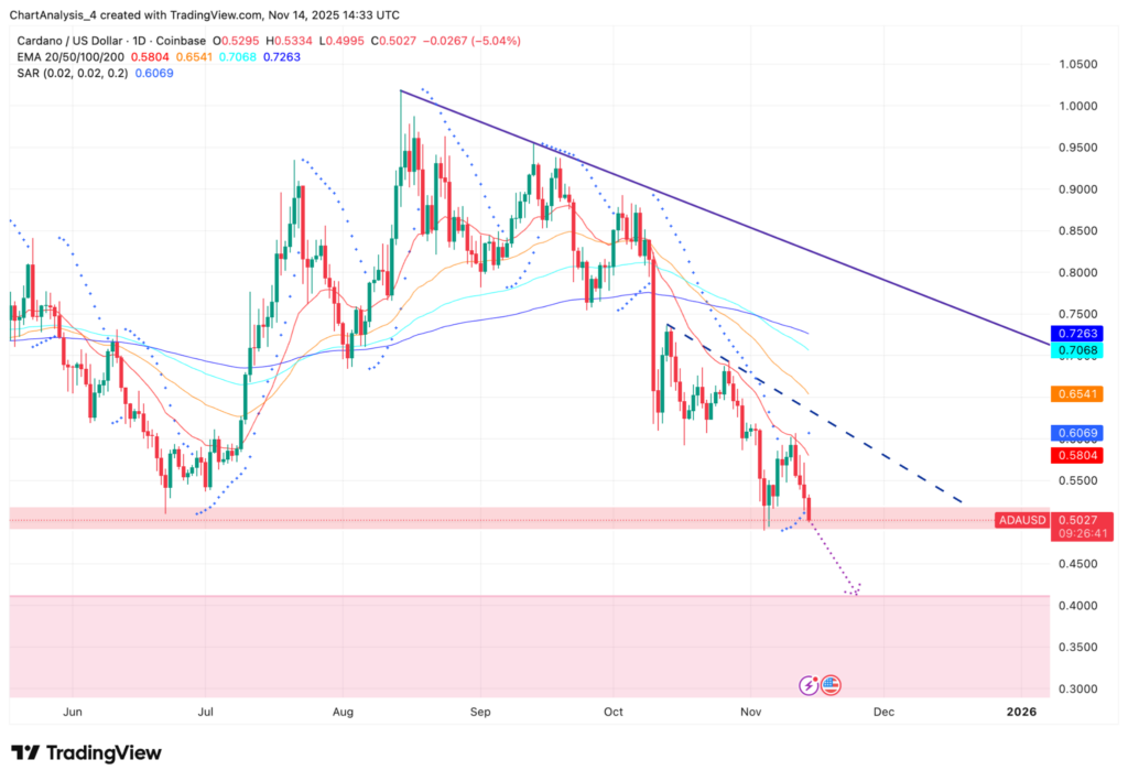 ADA se négocie à environ 0,50 $ après avoir perdu le support 0,53 $ – 0,55 $ plus tôt cette semaine.