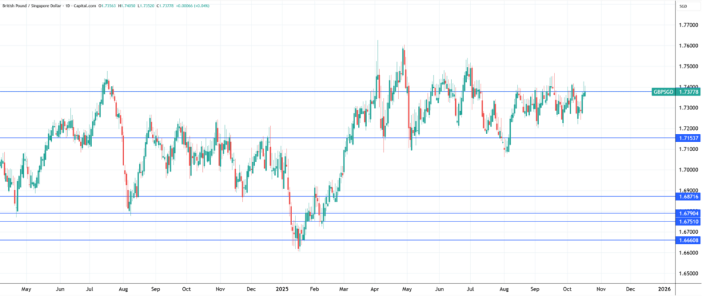 La livre sterling a vu sa valeur remonter récemment, gagnant du terrain contre presque toutes les devises. Après un rallye en début d’année, elle est restée dans une fourchette soutenue contre le dollar de Singapour. Toutefois, la construction d’une base pluriannuelle nécessite un examen plus approfondi.