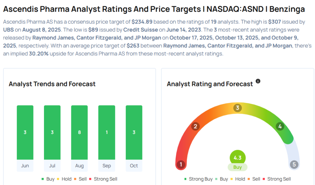 Mardi, les actions d’Ascendis Pharma ont progressé de 2,6 % pour clôturer à 201,16 dollars.