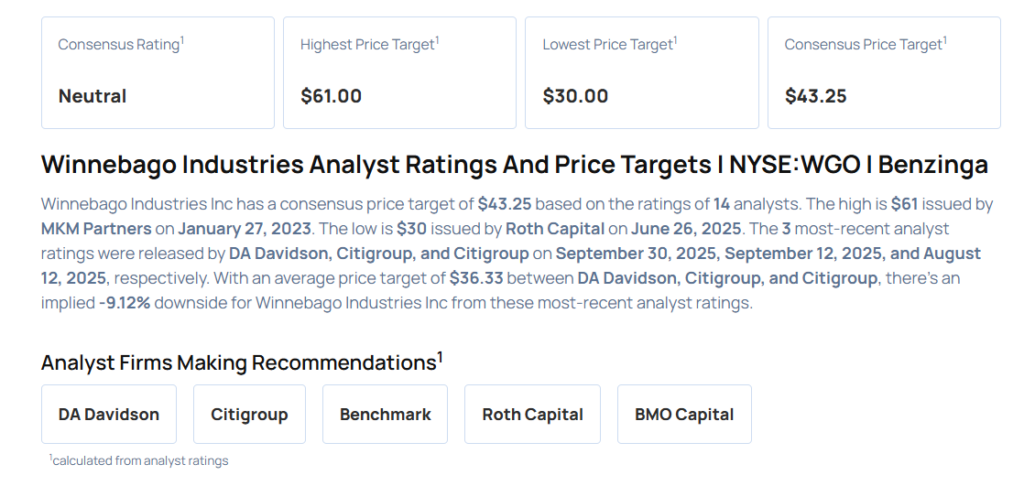- Noah Zatzkin, analyste chez Keybanc, a abaissé la note de Winnebago Industries Inc (NYSE:WGO) de Surpondérer à Pondération du secteur. Le titre Winnebago a clôturé à 40,64 dollars mercredi. Voir comment les autres analystes perçoivent ce titre.