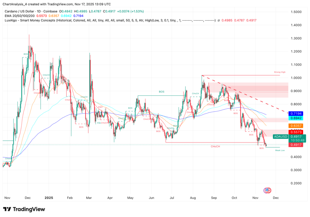 L’ADA se négocie désormais près de 0,49 dollars, juste au-dessus d’un plus bas faible déjà testé plusieurs fois cette année.