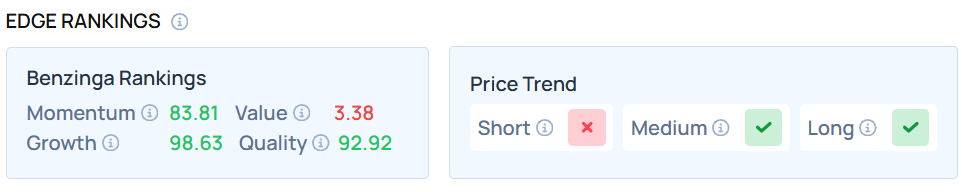 Le classement propriétaire Edge de Benzinga montre que la catégorie Croissance est la plus forte pour NVDA avec un score de 98,63/100. Découvrez comment il se compare aux autres actions des « Magnificent 7 » en cliquant ici.