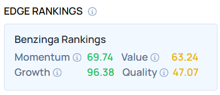 L’action a obtenu un score de croissance très élevé – une mesure de l’expansion historique combinée des actions en matière de bénéfices et de revenus sur plusieurs périodes. Comment cela se compare-t-il à Strategy et à d’autres actions liées aux cryptomonnaies ? Rendez-vous sur les classements d’actions de Benzinga Edge pour le savoir.