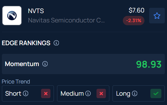 Le titre de Navitas Semiconductor Corporation (NASDAQ:NVTS) est en hausse ce jeudi.