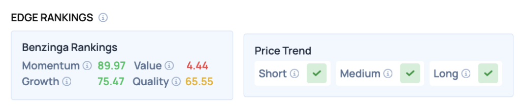 Classements Benzinga Edge : En reflétant les performances récentes du titre, les classements Benzinga Edge attribuent à Tesla un score Momentum élevé de 89,97.