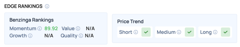Les classements Benzinga Edge : En soulignant le mouvement positif du titre, les classements Benzinga Edge montrent que Tempus AI bénéficie d’un score Momentum élevé, à 89,92.