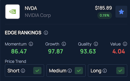 Au cours du dernier mois, les actions de Nvidia ont gagné 9,94 %. Malgré cela, le classement Benzinga’s Edge Stock Rankings place la croissance de Nvidia au 97e centile et la qualité au 93e, ce qui souligne sa solide position parmi ses rivaux tels qu’INTC.