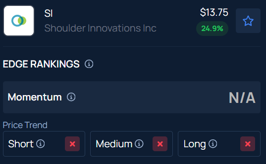 Les actions de Shoulder Innovations Inc. (NYSE:SI) ont progressé de 21,04 % lors des échanges en after-hours mardi, clôturant à 13,75 dollars, après que la société de technologie médicale a publié ses bénéfices du troisième trimestre qui ont dépassé les attentes, tout en relevant ses prévisions de revenus pour l’année.