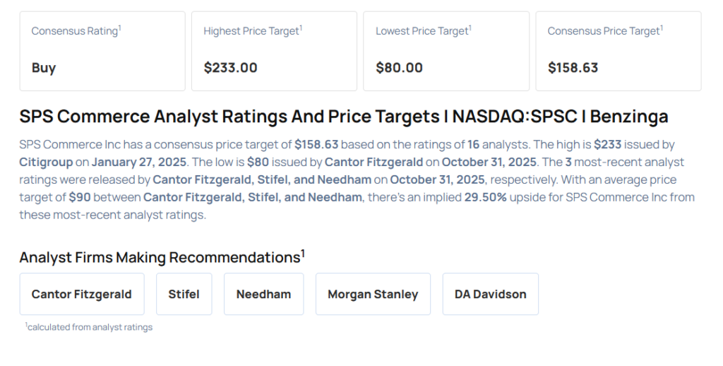 - L’analyste de Cantor Fitzgerald, Matthew Vanvliet, a rétrogradé SPS Commerce de Overweight à Neutral et a abaissé son objectif de cours de 135 à 80 dollars.