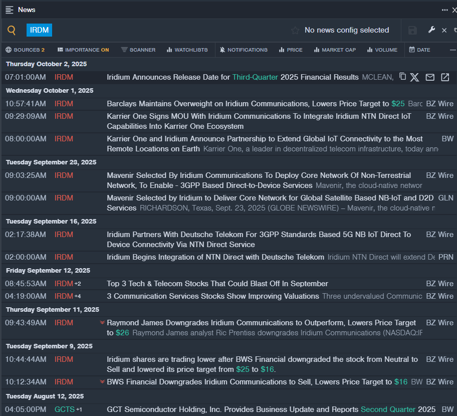 - Le fil d’actualités en temps réel de Benzinga Pro a signalé les dernières nouvelles IRDM.