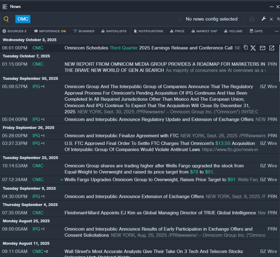 - Actualités récentes : Omnicom publiera ses résultats du troisième trimestre le mardi 21 octobre après la clôture de la Bourse de New York.