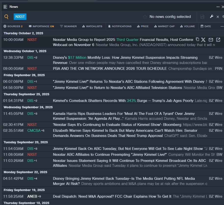 - Le fil d’actualités en temps réel de Benzinga Pro a signalé les dernières nouvelles de NXST