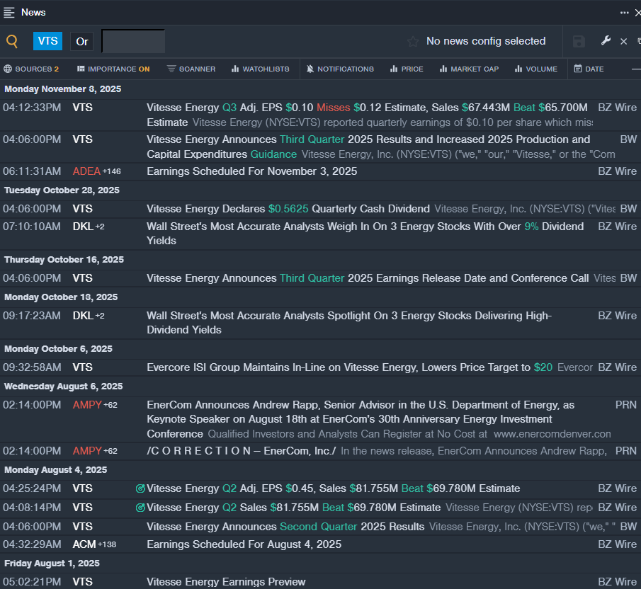 - Nouvelles récentes : Le 3 novembre, Vitesse Energy a publié des résultats trimestriels mitigés.