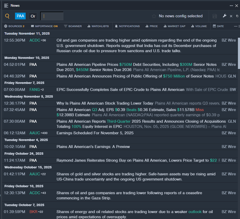- Le fil d’informations en temps réel de Benzinga Pro a alerté sur les dernières nouvelles de PAA