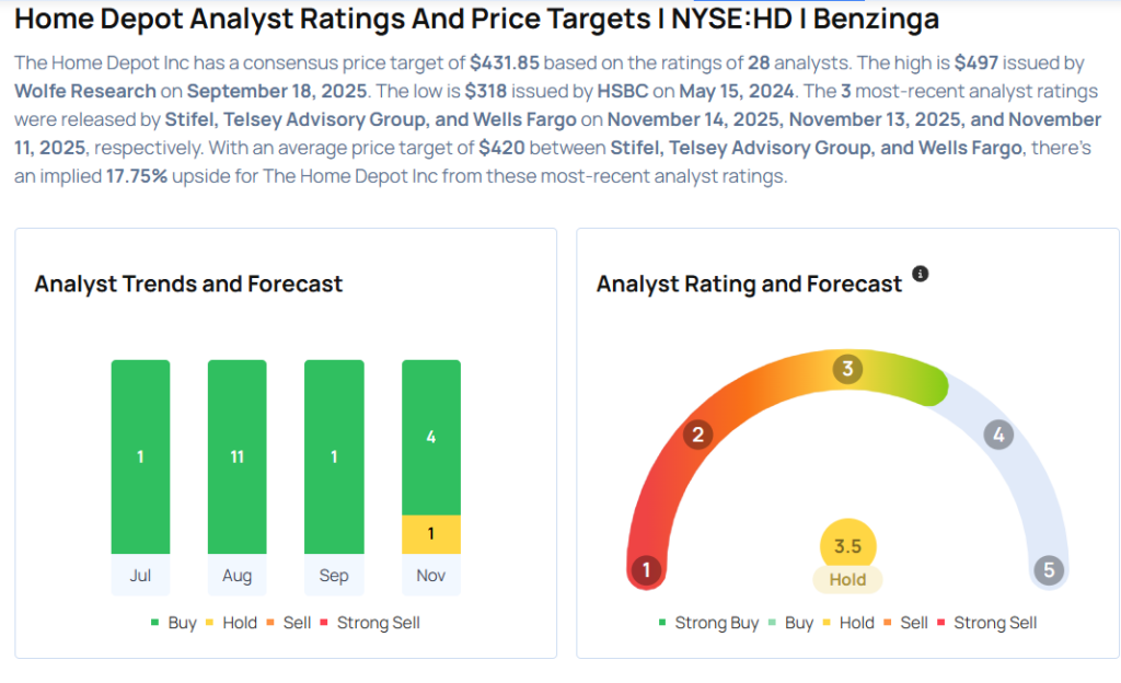 • Joseph Feldman, analyste chez Telsey Advisory Group, a maintenu une note Outperform avec un objectif de cours de 455 dollars le 13 novembre 2025. Cet analyste a un taux de précision de 66 %.