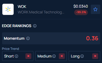 Les classements d’actions Benzinga Edge indiquent que WOK a une tendance négative des prix sur toutes les périodes. Suivez la performance des autres acteurs de ce segment.