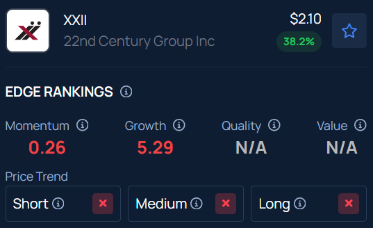 Les classements de titres Benzinga Edge indiquent que XXII est en tendance baissière sur toutes les périodes. Voici comment le titre se comporte selon d’autres paramètres.