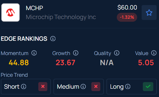 Les classements Edge Stock de Benzinga indiquent que MCHP est en train de consolider à court et moyen terme tout en maintenant un élan haussier à long terme. Suivez la performance des autres acteurs de ce segment.