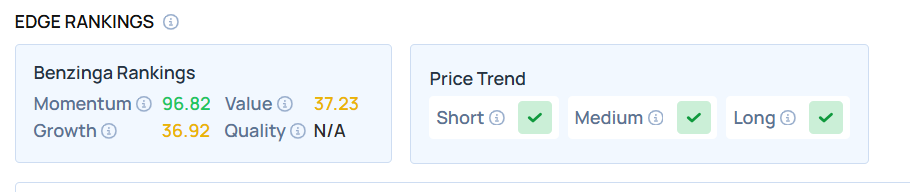 - Edge Stock Ratings : 96,82 Momentum score avec une valeur à 37,23.