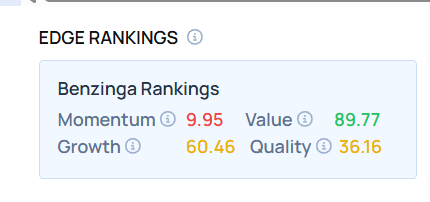 - Edge Stock Ratings : un score de momentum de 9,95 et une valeur de 89,77.