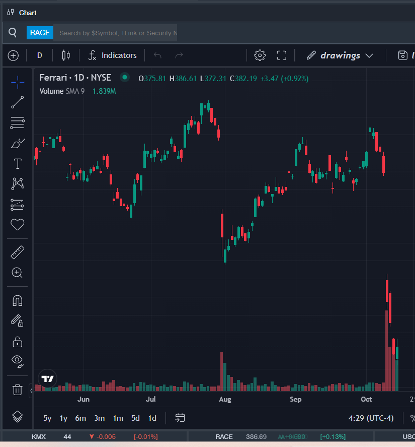 - RACE Price Action : Les actions de Ferrari ont progressé de 0,9 % pour clôturer à 382,19 dollars mardi.