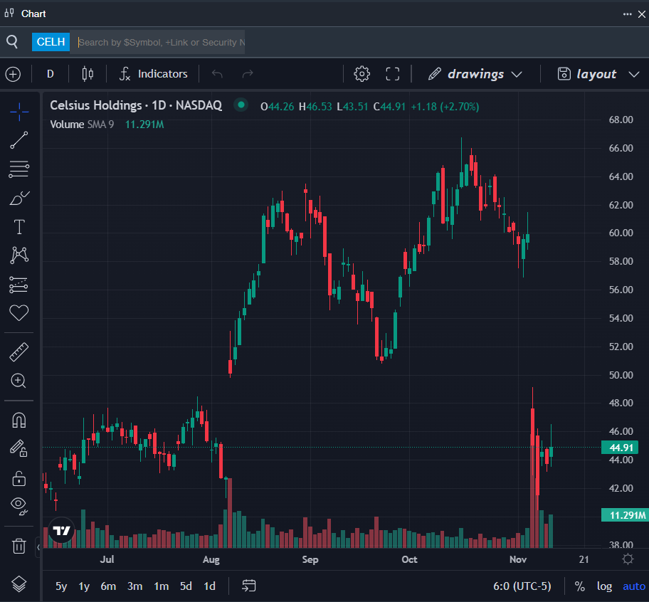 - Mouvement des prix de CELH : Le titre Celsius a gagné 2,7 % pour clôturer à 44,91 dollars mercredi.