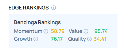 - Notes sur les actions Edge : 58,79, score de momentum, avec une valeur de 95,74.