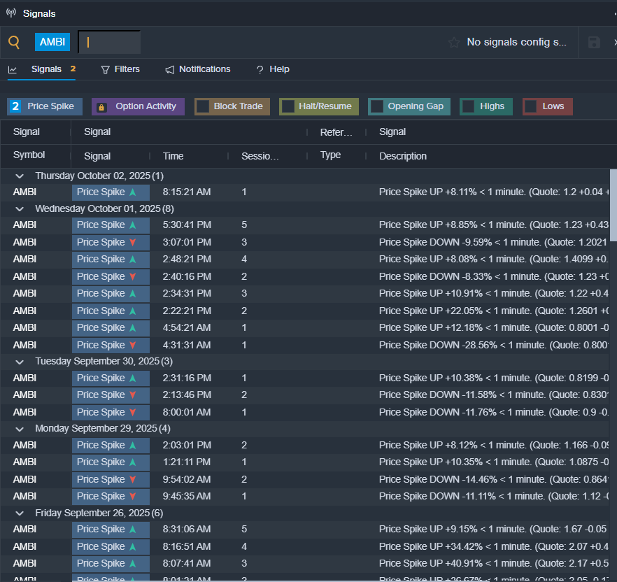 - La fonction de signaux de Benzinga Pro a notifié une percée potentielle des actions d’AMBI.